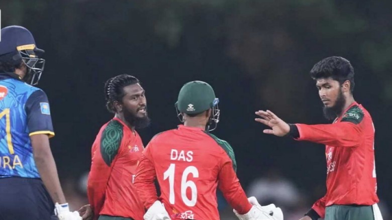 জবাবে ব্যাট করতে নেমে শুরু থেকেই বাংলাদেশের বোলিং আক্রমণের মুখে পড়েন শ্রীলঙ্কার ব্যাটাররা। রিশাদ হোসেন ৩টি, সাইফউদ্দিন ও শরিফুল ইসলাম ২টি করে উইকেট নেন। শেষ পর্যন্ত মাত্র ৯৪ রানেই গুটিয়ে যায় শ্রীলঙ্কা।
